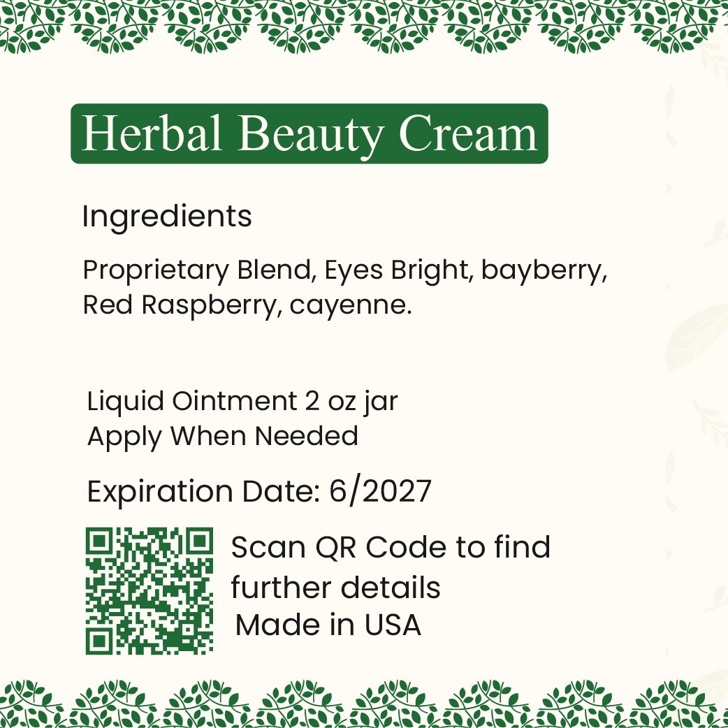 Formulated with a unique proprietary blend including Skullcap, Gardenia Oil, Gravel Root, and Aloe Vera, Herbal Beauty Cream harnesses the power of nature to nurture your skin. Skullcap is known for its anti-inflammatory and antioxidant properties, helping calm redness and protect against environmental damage. Gardenia Oil deeply moisturizes and supports skin renewal, while Gravel Root promotes skin healing and regeneration. Aloe Vera is a classic skin soother that hydrates and reduces irritation. Together, these ingredients work synergistically to enhance skin vitality, reduce signs of aging, and maintain a healthy, glowing complexion. Herbal Beauty Cream is your go-to natural solution for radiant and balanced skin.