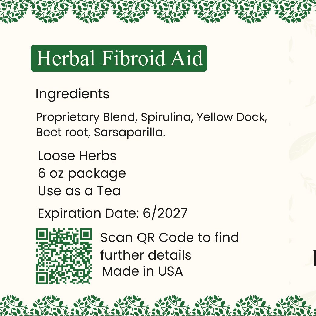 The Herbal Fibroid Aid loose herb blend combines powerful botanicals traditionally used to maintain reproductive health and promote hormonal balance. Yam Root is known for its phytoestrogen content, helping to regulate estrogen levels and ease symptoms of fibroid growth. Angelica supports circulation and helps regulate menstrual cycles, reducing cramping and discomfort. Yellow Dock acts as a gentle liver detoxifier, aiding the body in eliminating excess hormones and toxins that contribute to fibroid development. Burdock root supports overall cleansing and reduces inflammation, promoting a healthy reproductive environment. Together, these herbs work synergistically in tea form to nourish and balance the female reproductive system naturally, offering supportive care to women dealing with fibroids and cysts.