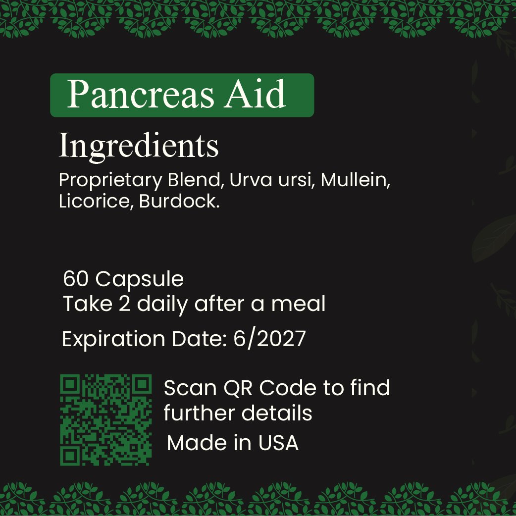 Pancreas Aid capsules feature a proprietary blend of Urva Ursi, Mullein, Licorice, and Burdock designed to restore pancreatic function. This natural formula supports healthy digestion, regulates blood sugar levels, and promotes overall pancreatic wellness. Ideal for daily support, it helps enhance metabolic balance and digestive health naturally and effectively.